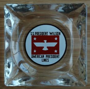 Ashtray for the American President liner ss President Wilson, the famous vessel built just after the end of WWII. In very good condition measuring about 3½”.