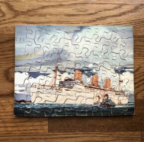 A jig-saw puzzle of one of the most beautiful liners ever built.  I’ve put it together, and unlike so many puzzles that are this old, it is complete.