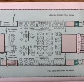 1960s deck plan for the beautiful Leonardo da Vinci of the Italian Line. Excellent condition.