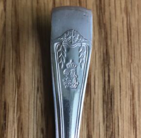 Beautiful pair of silver plate asparagus tongs made by Elkington.  Measures about 4.5″ long.  Dating to 1914, these tongs are in excellent condition and likely from the ss Aquitania in her famous acanthus leaf pattern.  Those were the gravy years for the Cunard Line.