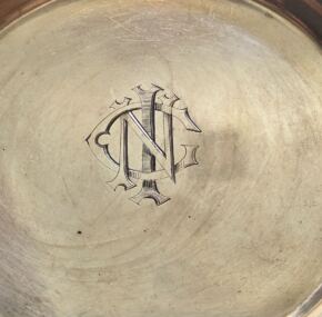 I have never had another one of these. I am not even sure what it is. A wine bottle coaster? Got any suggestions? What makes it interesting is that it’s NGI and thus predates the forced merger creating the Italian Line. Measures about 5.5″ in diameter and made by Broggi, Milan.