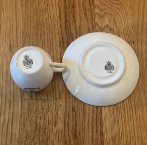 I was talking to an associate of mine a few years ago, and he told me a story about going into storage on board the Queen Mary back in the early 1980’s, and one of the things he vividly remembers is a shipping crate full of these cups and saucers in the original packaging. They had never been removed from the original wrapping. When Cunard retired the Mary, they took a lot of items that were in storage that the company would not be able to use and put them on board the Mary simply to get rid of them and close out their warehouse.