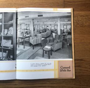 As a photo of the gift shop on board the RMS Aquitania proclaims in this brochure: “Buy a souvenir or they will think you walked!”