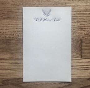 Not typically seen is stationery from the ss United States. The previous owner took it off the ship himself when he visited her in 1986. Both the logo and the ship’s name are embossed onto the sheet. In mint condition.