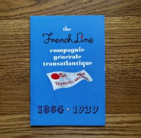 12-page brochure covering the French Line’s history from 1864 to 1939–thus their 75th anniversary. It is curious that they chose these dates to commemorate, but perhaps not so much when you think about it. The line was formed by 2 brothers in 1855. But it wasn’t until 1864 that it began sailing under the authority of the government and the auspices of the official mail contract. So I believe CGT was using this date as a starting point despite having been “founded” nine years earlier. Later the line would habitually use the more commonly accepted 1855. JF