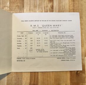 The fame of the Cunard Liner was such that everyone wanted to be a part of her farewell. So Southampton City Council published her last log from the epic cruise from the UK to California. The largest and longest log abstract in history? Really, it isn’t an abstract at all as it contains all the details of the voyage just as written in her log. An extensive and exhaustive minute-by-minute account of the ship’s final trip.
