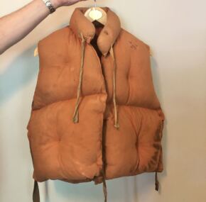 Comes with a letter signed by Marion O’Leary, Mr. Rinkowski’s nephew, as well as a photocopy of a certificate presented to Mr. Rinkowski and signed by the President of the United Fruit Company, which owned the Cape Ann. The life jacket, paperwork, and Polaroid photos of the life jacket itself were sold to ocean liner dealer Ken Schultz in 1982. He then sold it on to the collector I purchased it from.