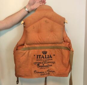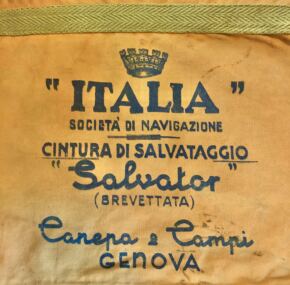 Andrea Doria. The name conjures up images not only the tragic loss of one of the most beautiful ships ever built but also of one of the greatest sea rescues in history. Premium items from the Doria are rare, and this is one of the most important items I have ever had for her–a life jacket taken off the ill-fated vessel during the sinking.