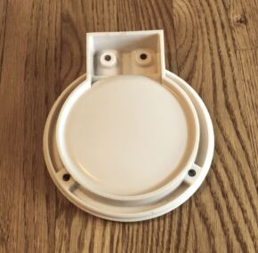 One of the most iconic ashtrays used by any ocean-liner company. The only one that might be better known is the ss France funnel ashtray. Known throughout the collecting world as a “toilet” ashtray given its shape, this style was introduced on board the RMS Queen Mary at the time of her maiden voyage. It also was produced as a souvenir to be sold on board (marked souvenir on the bottom), but happily this is the in-service version. These came in two sizes, and this is the larger of the two, measuring about 6″ x 7″. Aside from some tiny chips here and there, this is in great condition.
