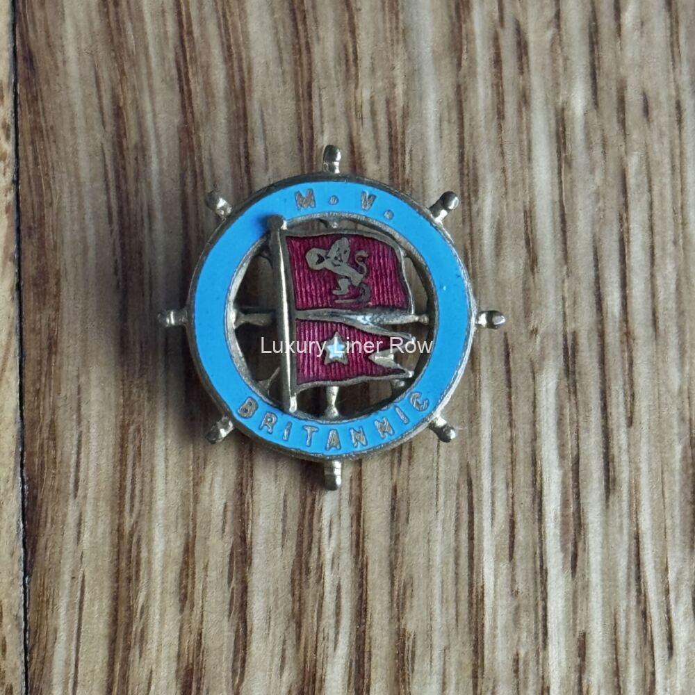 A Cunard White Star Line lapel pin sold in the on-board gift shops of this the famous last-sailing ship of the White Star Line fleet, which dates to the 1950s. I have often wondered why the Cunard Line never built another motor vessel, always opting for turbines. RMS Britannic gave great service and sipped fuel oil compared to her similarly sized fleet mates. She burned about 90 tons a day versus Queen Mary’s 1050 tons a day! Measures about a 1″ in diameter and in excellent condition. Haven’t had one for you in a while. AC