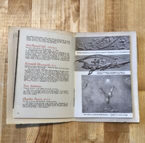 I haven’t had one of these little cuties in a long while. Extensive brochure about the art and artists on board our favorite liner, RMS Queen Mary. Runs a generous 36 pages with heaps of information about the famous artists as well as the art. There are so many letters after these names it looks like they are playing scrabble and winning! Some slight scuffing to cover.