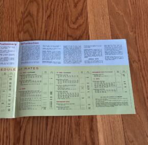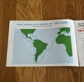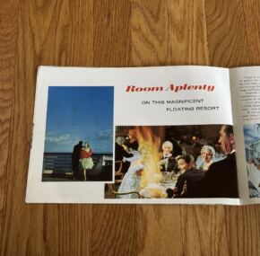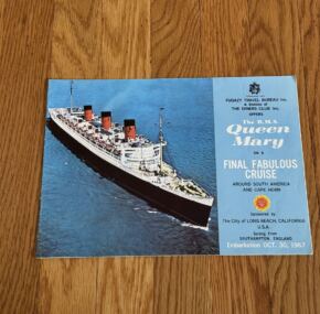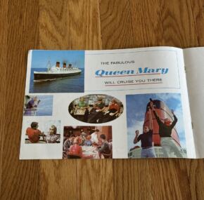 39 exciting fun-filled days aboard the most famous “Queen of the Seas.”  Here’s the brochure that Long Beach and Diner’s Club produced for the last, long trip to deliver the RMS Queen Mary to her new home.  Mint condition.  While looking through it, I kept daydreaming about what I would have done with this much time on board!  And look at how very expensive it was….  Full rates included in the back.