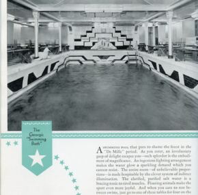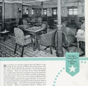 One of White Star’s most lavish brochures created in the midst of the depression. This would be one of the last brochures for Adriatic and Baltic. Celtic and Cedric having already gone. Runs 24 pages with nearly one full photo per page. Images would scan well. Very interesting to compare the interiors of this very mismatched quartet. Shown are Georgic, Baltic, Britannic, and Adriatic. In excellent condition. Dated September, 1932.