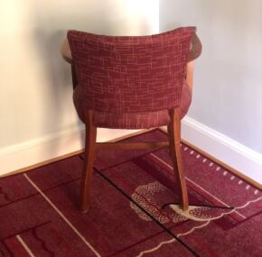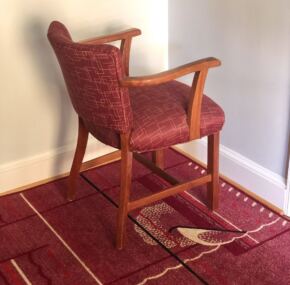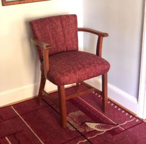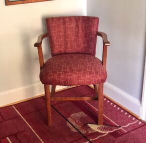 You will go many years before you have the opportunity to acquire a unique crew chair like this from the RMS Queen Mary as very few pieces of crew furniture ever come onto the market. Marked on the bottom as having come from one of the purser’s offices on board, the quality of the mahogany, the study construction, the beauty of its restoration, and the cool spot it was used on board all combine to make a fine and useful chair for your home and collection. The chair measures about 30″ tall x 21.5″ wide x 23.5″ deep. Completely restored and ready to go as a centerpiece for your collection.