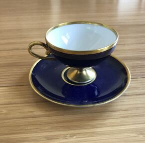 Cobalt bone-china demitasse NDL cup and saucer. There is some debate about whether these are in-service pieces or whether they were sold on board in the gift shop of the Bremen and Europa. I’ll let you decide. Excellent condition. An exquisite piece.