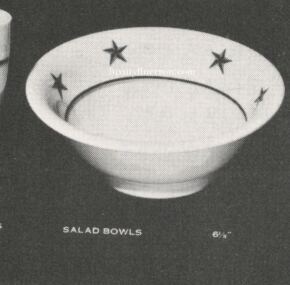 Rarely seen salad bowl from the ss United States.  These come to us direct from the auction in 1984.  Our friend Mr. Fielding of Fielding’s travel-guide-book fame said if you wanted good food on the ss United States to stick to steak and potatoes.  No American meal of steak and baked potato from the 1950’s would be complete without a side salad!  No chips, cracks, or crazing and made by Lamberton. Measures about 6″ in diameter.   A quantity available.
