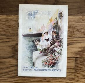 White Star Line used several different covers on their passenger lists with styles changing every few years or so in keeping with the styles of the era. 19th Century lists have a very 19th Century feel to the fonts and artwork. If you want a great list for your collection, this is one to have sporting White Star’s Mediterranean services cover. It is for Cretic’s voyage from New York to Naples, October 31, 1911. Captain Lobez in command.