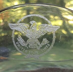 Super nice mid-century champagne saucer from the Big Ship, the ss United States. It stands about 4.5″ tall. In excellent condition. FC