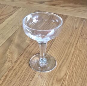 According to ship’s inventory, these are cocktail glasses. They are not the champagne glasses as they are too small at 3.25 ounces. I have measured them, and they do hold exactly 3.25 ounces. Not at all common and a nice addition to any collection.