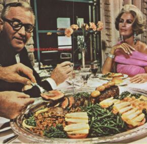 The reviewer does go on to say if you stick to American fare, like steak and potatoes, the ship does a very good job. Note archival for the wine glass in use and the steak and potatoes, just what USL wanted you to see. Have your red like the Duke of Windsor did from these glasses.