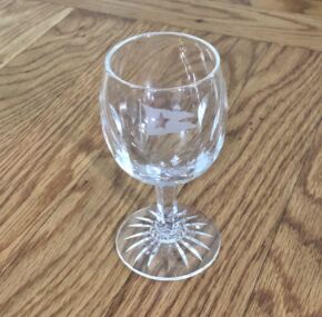 Exceedingly rare and very desirable crystal wine glass as supplied to RMS Olympic and other White Star liners. Identical pattern to that used on RMS Titanic and recovered from the wreck site. Measures about 4″ tall and in excellent condition. This is an item I really want to keep for my personal collection so for one of you a very rare opportunity. Note wine glasses in use in this photo on board the RMS Majestic.