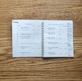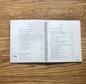 This is a Cunard Line pocket-sized wine and tobacco list. They also produced a full-sized version. I would love to know why 2 sizes/ They both had the same cover. Not dated but judging by the wines with nothing vintage past the second world war I’m going to say it dates to the 1950s. You could still get Cunard White Star’s private label scotch if you were so inclined. I haven’t had one of these in some time and I must say it is a lot of fun to look at all the fine living available in this list. If as Winston Churchill said “My tastes are simple. I am easily satisfied with the best”. Well, he would be right at home with this list. Had been folded sometime in the past.
