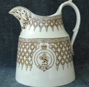 Collecting 19th century Cunard china would highlight any display cabinet. This large serving pitcher only serves to highlight that rule. Dates from the 1850’s or 1860’s. Considering how small the ships at that time were it’s amazing any serving pieces survive at all. Measuring a foot tall this is the only larger sized version I have ever seen in the “basketweave” pattern. Excellent condition with no chips, cracks, or crazing. Who else brings you the rarest of the rare?