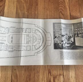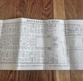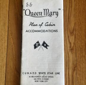 Dated March, 1936, this Cunard White Star Line deck plan showcases the upcoming first-class grandeur of the RMS Queen Mary. A couple of flea bites to the cover and some very slight discoloration the edge but otherwise great condition. Would be very interesting to compare this with later deck plans to see how things changed over the years. Pre-war deck plans for her are very difficult to come by.