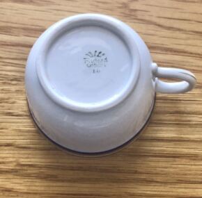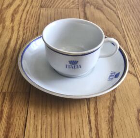 Cute demitasse cup and saucer as used in second-class on the ss Andrea Doria and ss Cristoforo Colombo. Not often seen and famously recovered from the wreck. Made by Ginori with the cup in excellent condition. Delicate and displays very well. Amazing that Italia sprung for fine china in second class.