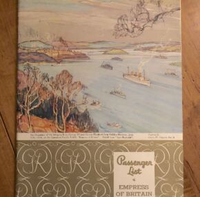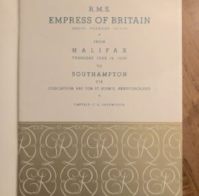 Far and away one of the rarest passenger lists out there. For the Empress of Britain dated June 15, 1939. Why is this so rare, you may ask? Because this is the trip that carried King George VI and Queen Elizabeth home from their Canadian tour just before the start of World War II. Of course, some of their staff were on board as well, but can you imagine how few of these lists still survive since there were only 40 passengers total on board? On this voyage there were no other passengers than those in the Royal Party. Making the crossing with the Empress of Britain were also five escort vessels. Grab this one while you can because you may never see another!