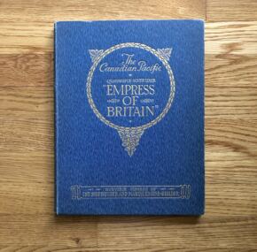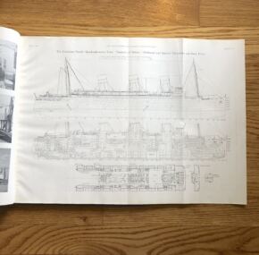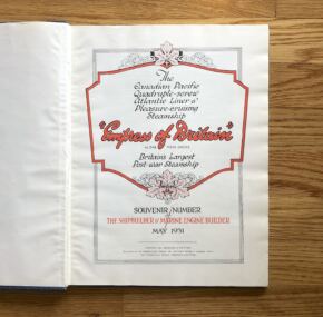 The book is hardcover and runs 132 pages with hundreds of illustrations, including a number of interiors in full color. Much of what you ever wanted to know about the Empress of Britain is here. Unfortunately, she was lost during the second World War and lies upside down at the bottom of the Atlantic. Overall in excellent condition although the page edges have bit of waviness to them.