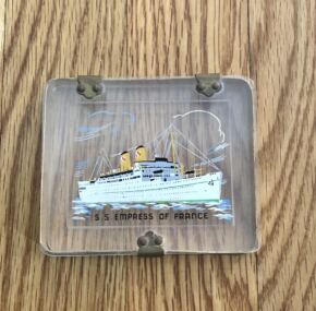 Cigarette box from the on-board gift shop of the Canadian Pacific liner RMS Empress of France. She was built as the Duchess of Bedford in 1928, and this dates from her post-war service in the 1950s. I don’t think I have ever had a cigarette box from CPR before at all. Quite rare!