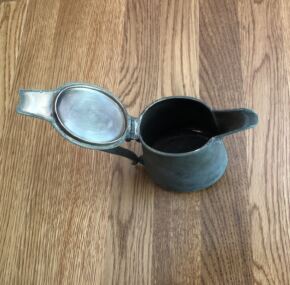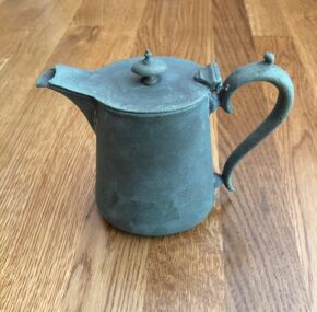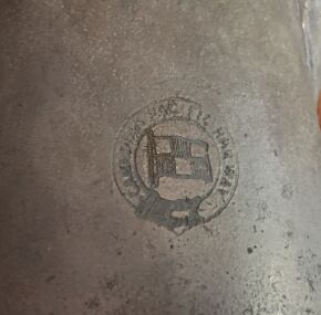 Salvaged silver coffee pot from the ill-fated Empress of Ireland. It amazes me how the silver on the inside of the lid is still intact and shiny after all those years at the bottom of the St. Lawrence River. The pot stands 6″ tall and from handle to spout is about 6.5″. Made by Mappin and Webb and fully marked with the Canadian Pacific logo on the side, this coffee pot is in very good condition and quite rare. For some reason tea pots come up more often.