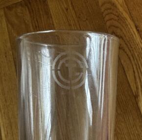 Unusual and rare third-class water glass from the on-board service. Stands about 4″ tall. Excellent condition. JF