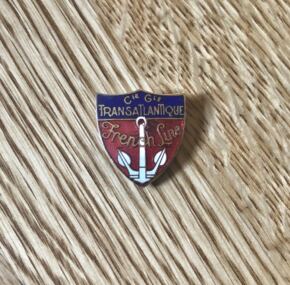 A well-made enamel lapel broach from the famous French Line. Compagnie Generale Transatlantique sold these in the gift shop on the grand liners of the 1950s such as Ile de France and Liberte. As opposed to a pin, this one can be put through the lapel hole on a suit jacket. No damage to the enamel and will, of course, be highly useful next time you go on a cruise or to a liner function.