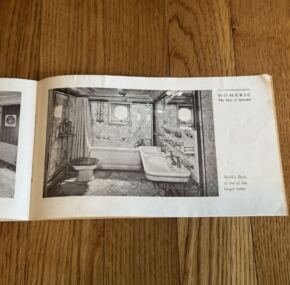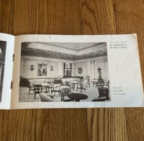 Produced about the time the RMS Homeric entered into service in 1922.  This brochure is in very good condition with one small tear on cover.  Runs 24 pages and covers both first and second class.  JF