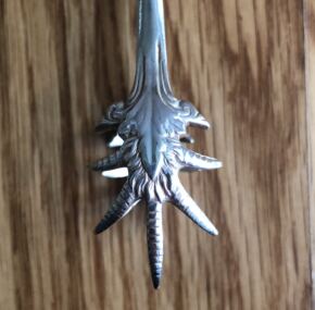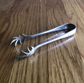 Elaborate and impressive, these clawed ice tongs would look amazing in your display of Cunard Line silver. They measure about 5.5″ long. Perfect condition with perfect logo. Made by Harrison Brothers, the logo dates to the 1920’s.