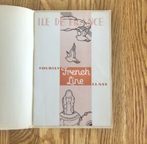 Never seen another of these! Tourist-class brochure for one of the French Line’s greats. 16 pages with 13 images, most of which I have never seen before. It’s like a tour of tourist class! Dated April, 1937, the brochure is an in excellent condition.