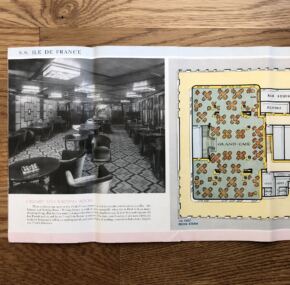 First-class deck plans for the ss Ile de France are hard to come by, but the most sought after are the iconic ISO plans that give the decks a 3-D appearance. These are simply amazing and are only second to the ones for the ss Normandie! When open, the plans measure a full 44” long and have incredible detail! In excellent condition with some rubbing to the edges. Probably the best you’ll ever see. JF