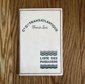 Passenger list for the Ile de France dated September 23, 1931. Lists officers, including the very well-known and liked Henri Villar, who went on to be the Chief Purser of the Normandie a few years later. Among the passengers is Grand Duchess Marie of Russia. Lots of maids, valets, and chauffeurs on board. Covers both first and second class. Excellent condition.