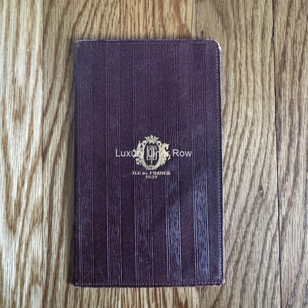 On-board souvenir from one of the most spectacular of all French liners. Souvenir leather wallet from the Ile de France. Measures about 7″ x 4″. JF