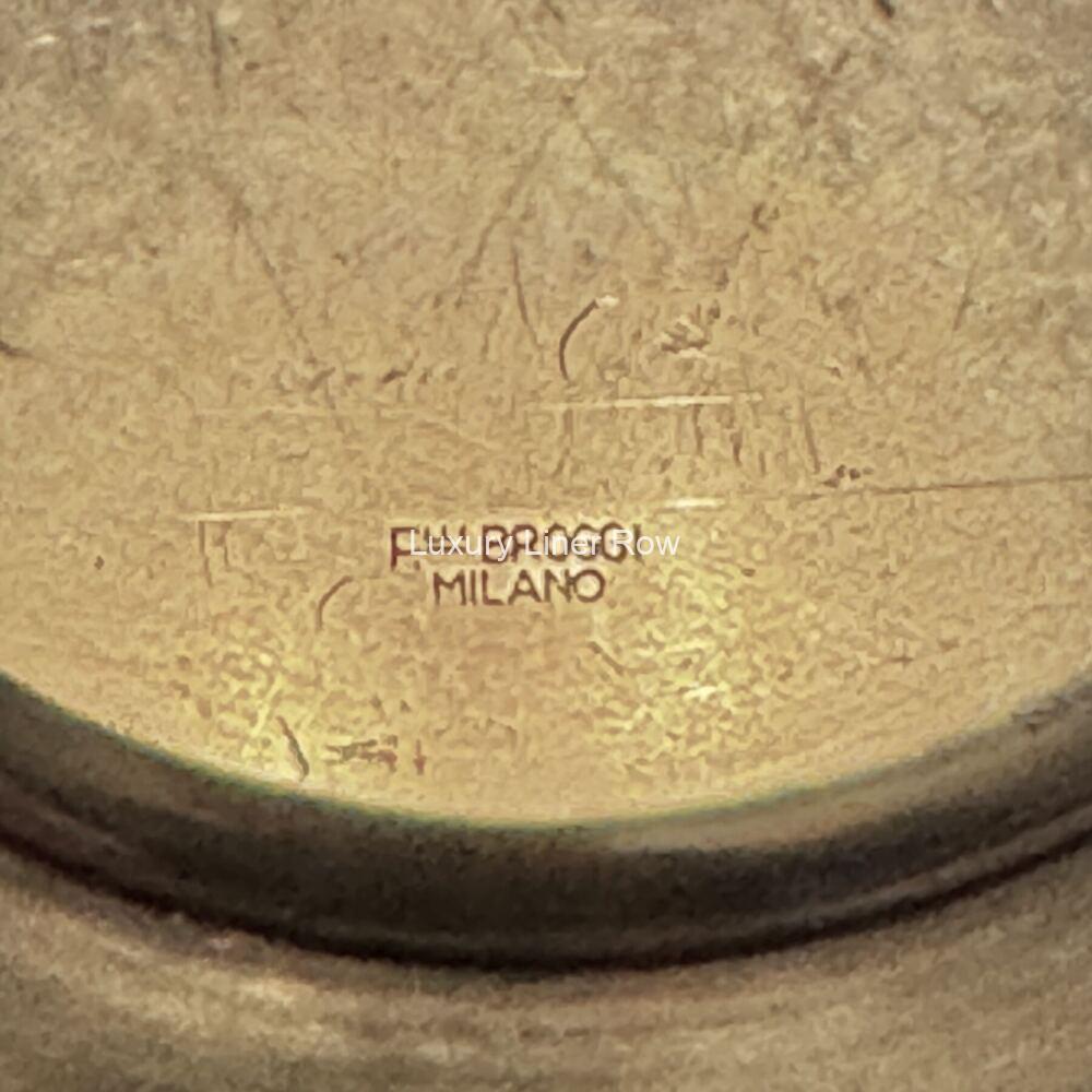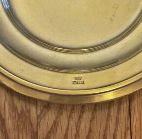 Mint condition and exceedingly rare gold-washed salver made by Broggi. I know Italia used some gold washed items in first-class. Anyone out there know what it was used for? I know silver ruins the taste of caviar so perhaps this is a part of that exalted service. Never had another. It measures about 6.5″ across. Not often seen and a treat to put in your case. Made by Broggi with the slightest of utensil marks. “Treat yourself!” JF