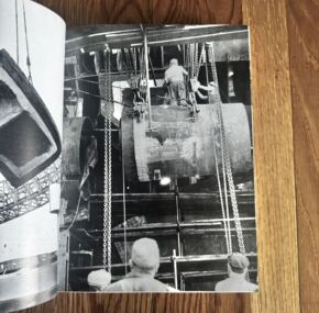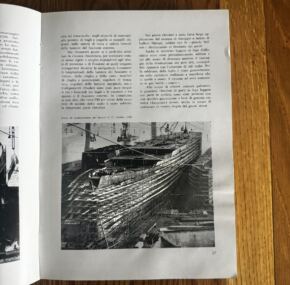 Do you enjoy the Italian Line’s superb t/n Leonardo Da Vinci? Who doesn’t? So imagine how amazing it is to see every single aspect of this great liner inside this 360-page shipbuilder. Softcover and in Italian. Lots of color photos. Have you ever seen the da Vinci’s engine room in color? It has gotten slightly damp at some point, but aside from some waviness on some pages, it does not detract. It covers the ship so well that it is clearly too much to list. JF