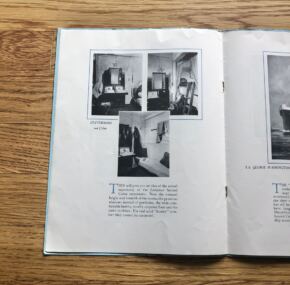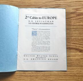 I have not had this brochure before. It is a large and interesting study of the second-class cabins on both the ss Levithan and ss George Washington. Must date to about 1923 or so. Runs 16 pages and really showcases the Edwardian splendor still to be found in second class 100 years ago. They were quite proud of the “sanitary, germproof, modern and efficient” barber shops. People appreciated an efficient haircut 100 years ago it seems. 🙂 Interestingly the cabins on the George Washington had fully plumbed hot-and-cold running sinks while Leviathan had the old-fashioned compactums.
