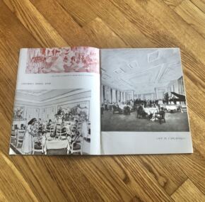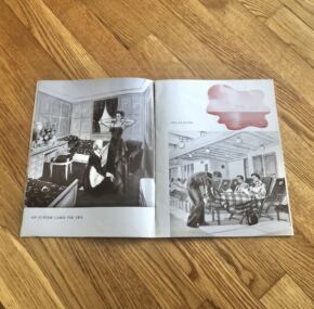 This brochure covers all three classes on board and runs 36 pages with 50 images. ss Liberte was the post war flagship of the French Line and their pride really shows in this extensive brochure.