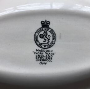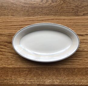 Sought-after asparagus dish as used on the RMS Queen Mary, RMS Queen Elizabeth, RMS Caronia, and all of the Cunard post war fleet. These, however, came from the famous restaurant One 5th Ave in New York City. So, in a very rare occurrence, we can say for sure these dishes came off the Caronia. The owners of the restaurant furnished the entire establishment with items from the famous liner. In excellent condition with a small quantity available. Measures about 8.25″ x 5″. Price is per dish.