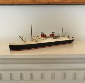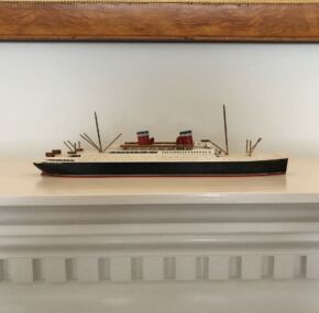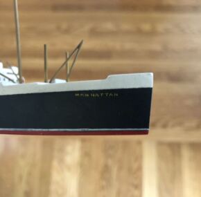 Van Ryper started his ship modeling business in 1933 in Martha’s Vineyard. The idea was straight forward–make handmade models in a very recognizable style.  The name is famous, and the models are outstanding.  But being 80-90 years old now, they are quite rare.  This is a Van Ryper model of United States Line’s Manhattan of 1932.  It is in excellent condition, having been cherished by a collector all these years.  I was fortunate enough to buy his entire collection.  Measures about 10″ long.