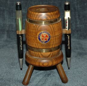 For those (like myself) trying to rebuild the Cunard onboard gift shop in your home, here is an oddity. Wooden barrel pen and pencil holder. Happily comes with both its original floaty Mauretania pencil (the ship has a black hull) and pencil (the ship is in her short-lived green phase). Excellent condition. Never seen another.