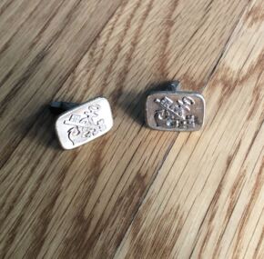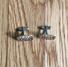 Straight from the on-board gift shop and likely dates to the post-war resurgence era after 1958. These brass cufflinks would dress up any collector or collection. Measures about 1″ across the face. In very good condition.