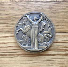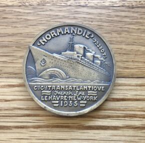 I am pleased to offer a lovely bronze medal for ss Normandie’s maiden voyage. Designed by Jean Vernon and made by the French mint, the medal is in near-mint condition. It measures about 2¾” across. The best part is that it comes with its original box, and it is difficult to find one in such good condition. Normandie medals are very popular; so I don’t expect this medal to hang around too long! This is a far lower in price than I am seeing them for elsewhere….